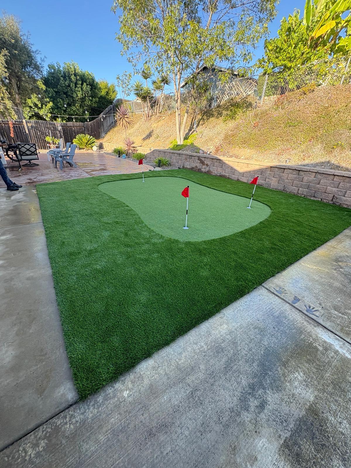 Elevate your backyard with our custom Putting Green services. Perfect for golf enthusiasts of all levels, our high-quality synthetic greens are designed for durability, minimal maintenance, and year-round play. Transform your outdoor space into a golfer's paradise today.